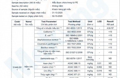 BÁO CÁO KẾT QUẢ PHÂN TÍCH SẢN PHẨM NẤM LINH CHI